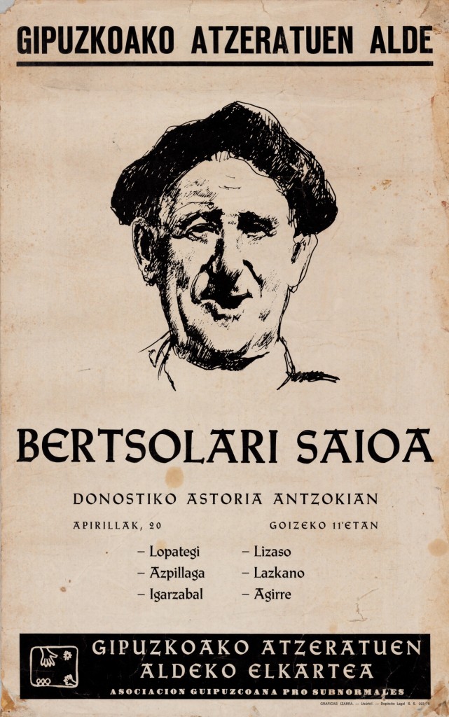 Título: Gipuzkoako atzeratuen alde [Material gráfico] : bertsolari saioa : Donostiko Astoria Antzokian apirillak, 20 goizeko 11'etan : Lopategi, Azpillaga, Igarzabal, Lizaso, Lazkano, Agirre