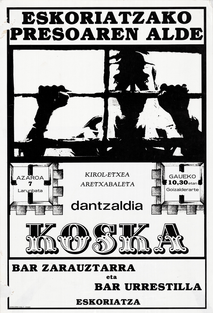 Título: Eskoriatzako presoen alde [Material gráfico] : azaroa 7 larunbata gaueko 10.30etan Goizalderarte Kirol-Etxea, Aretxabaleta dantzaldia Koska