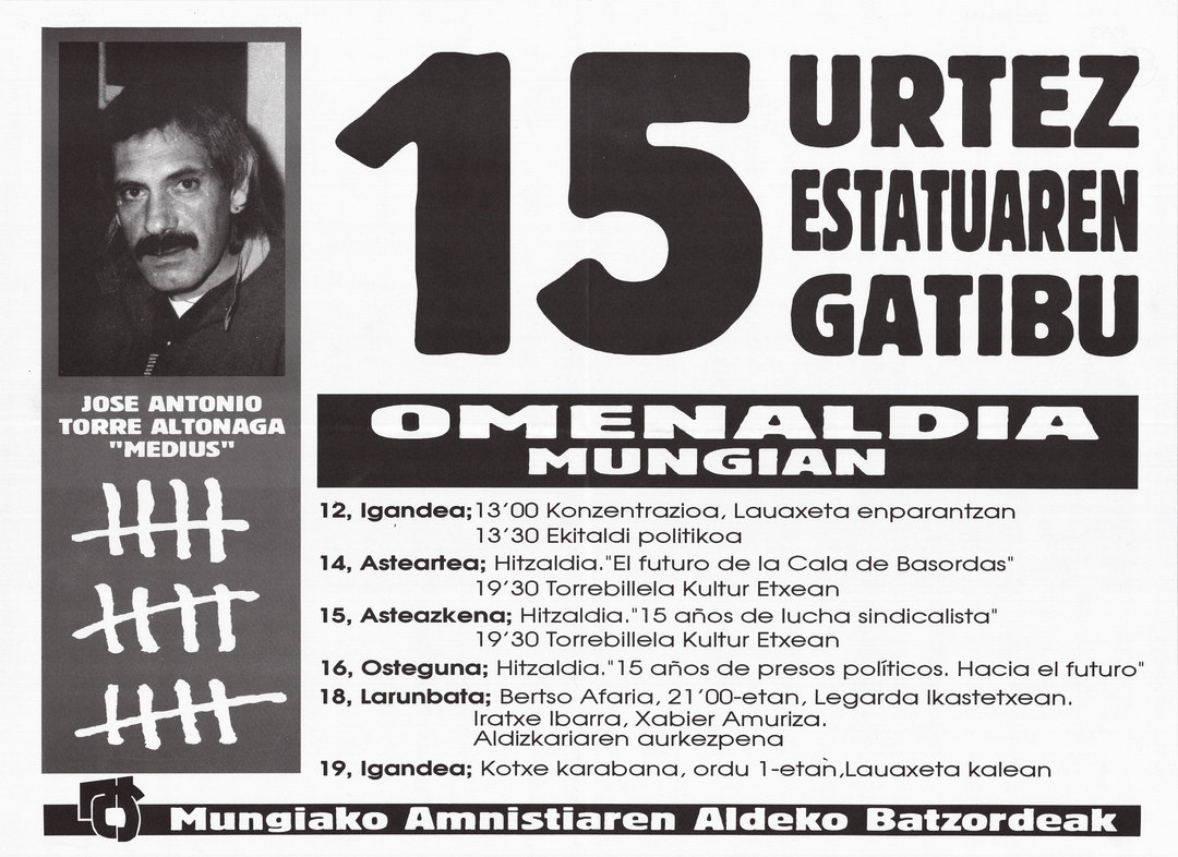Título: 15 urtez estatuaren gatibu [Material gráfico] : omenaldia Mungian Jose Antonio Torre Altonaga "Medius"