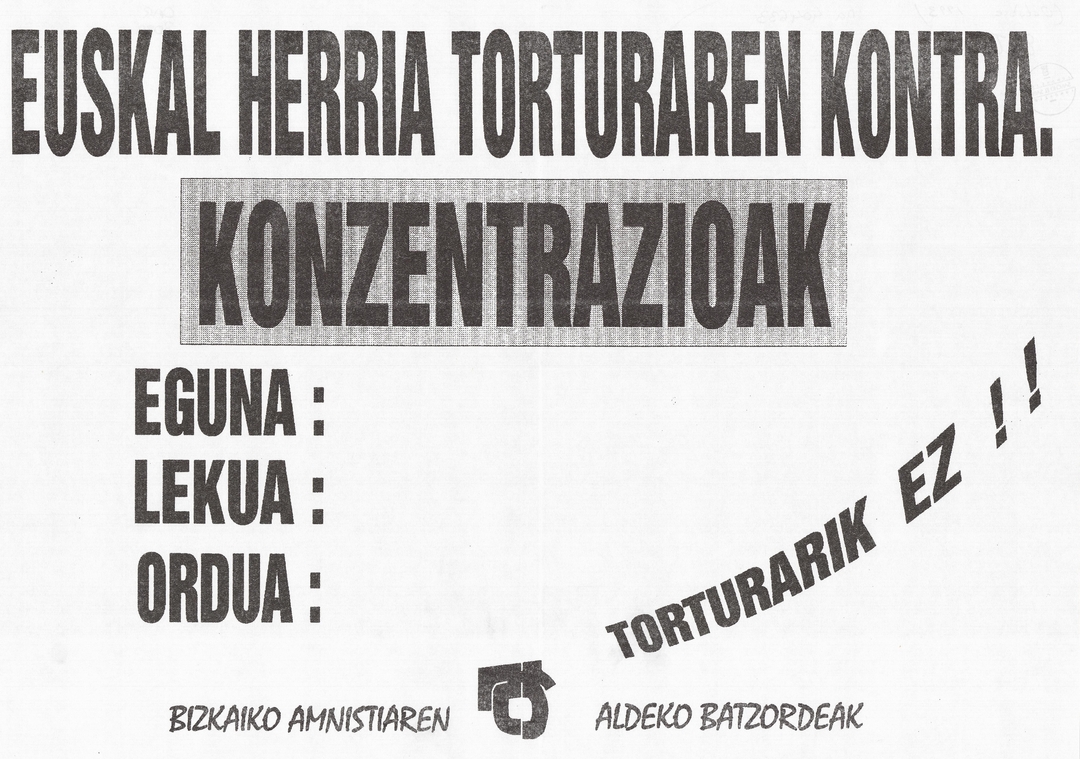 Título: Euskal Herria torturaren kontra [Material gráfico] : konzentrazaioak torturarik ez!!