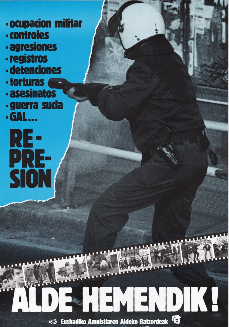 Título: Represión [Material gráfico] : ocupación militar, controles, agresiones, registros, detenciones, torturas, asesinatos, guerra sucia, GAL__ : alde hemendik!
