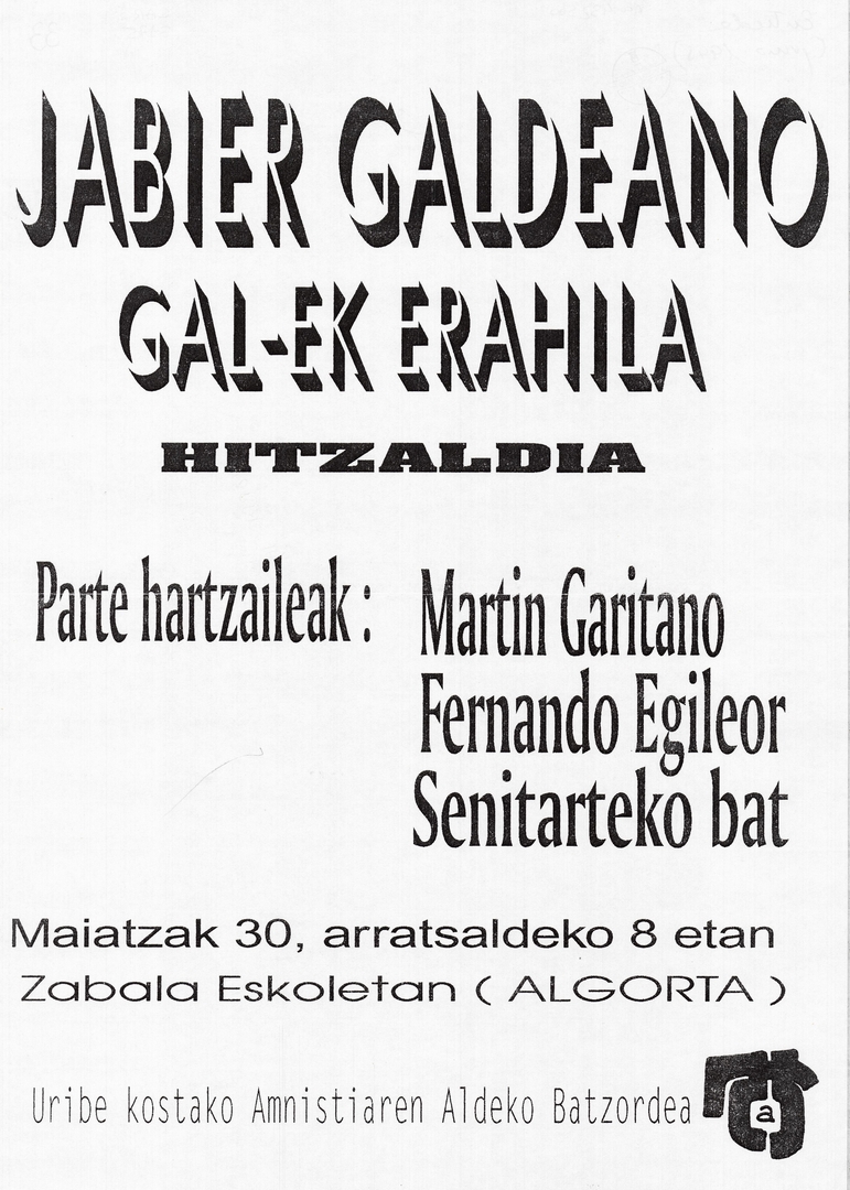 Título: Jabier Galdeano GAL-ek erahila [Material gráfico] : hitzaldia maitzak 30, Algorta
