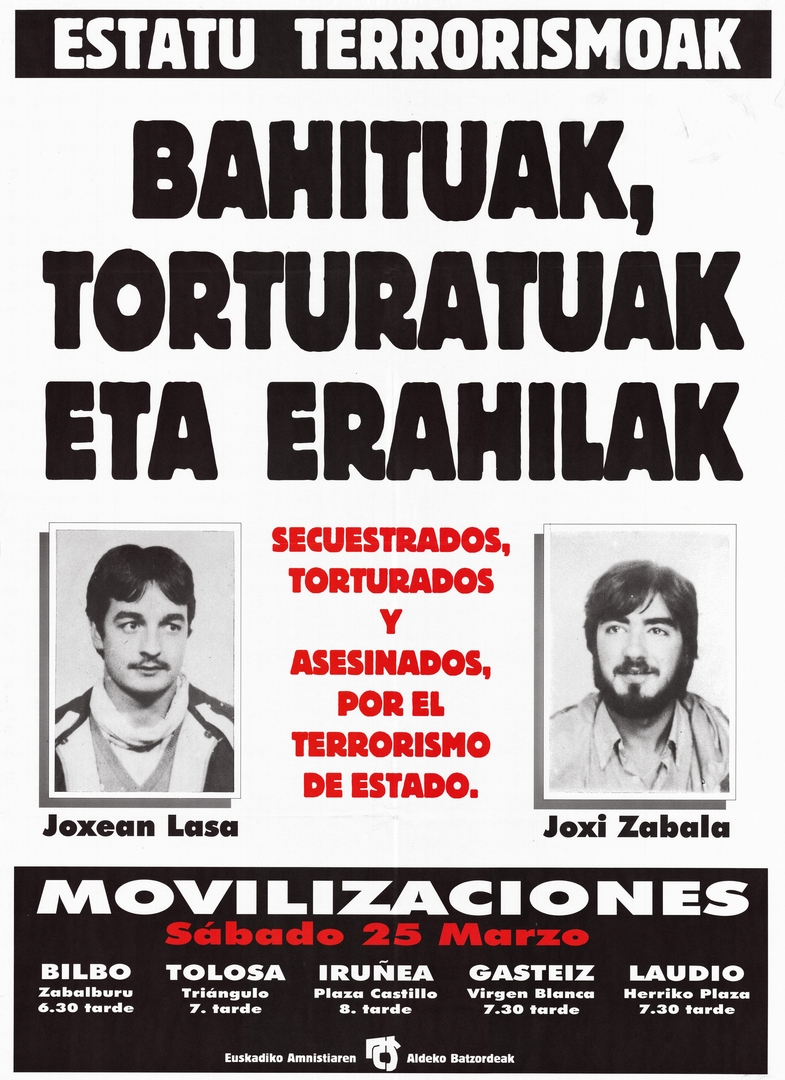 Título: Estatu terrorismoak bahituak torturatuak eta erahilak Joxean Lasa-Joxi Zabala [Material gráfico] : movilizaciones sábado 25 marzo