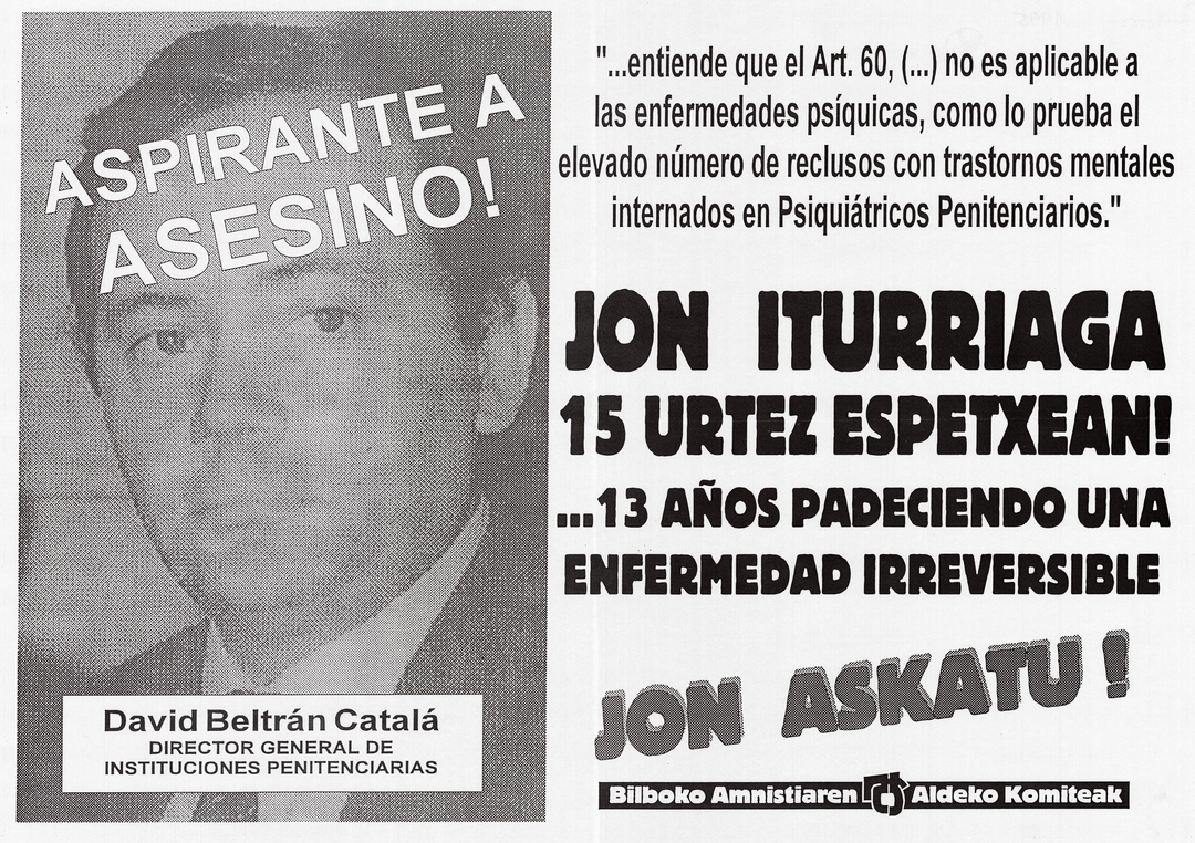 Título: Jon Iturriaga 15 urtez espetxean! [Material gráfico] : 13 años padeciendo una enfermedad irreversible : Jon askatu!