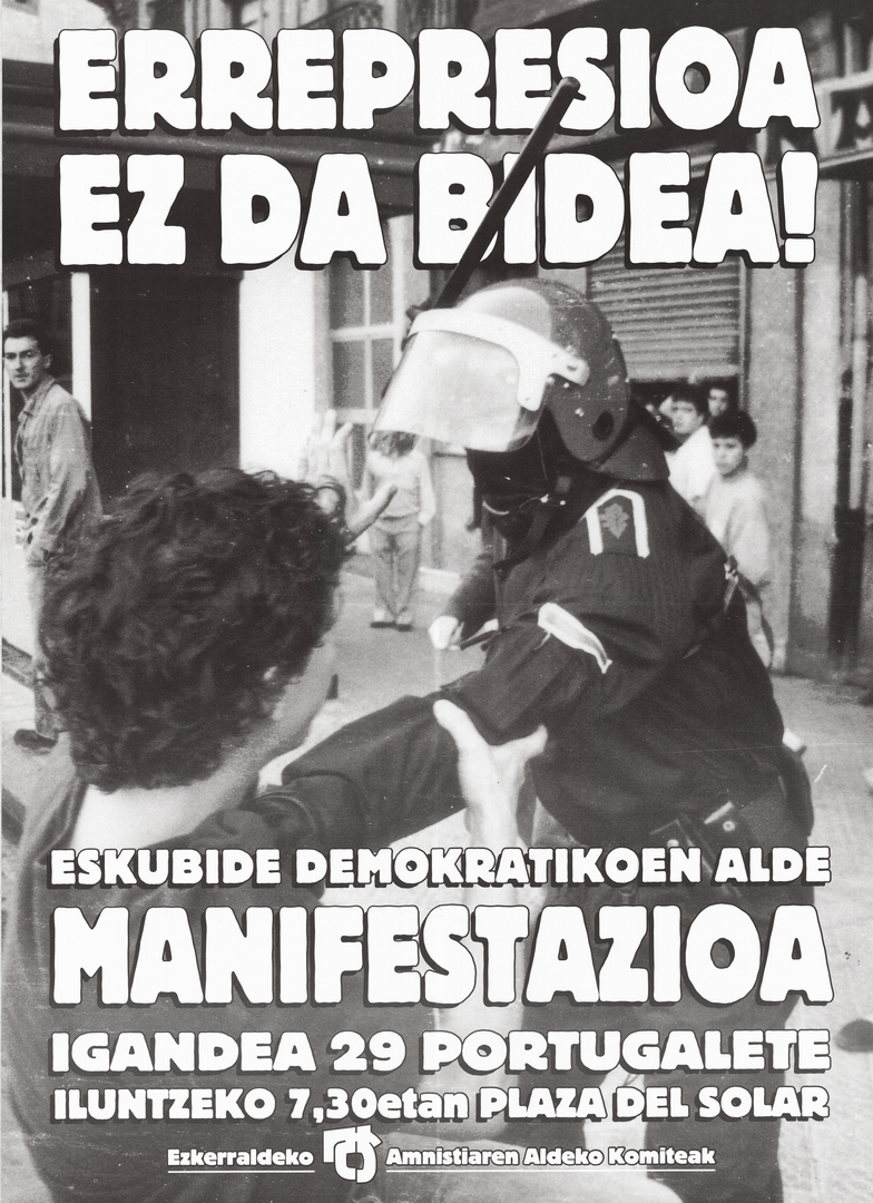 Título: Errepresioa ez da bidea [Material gráfico] : eskubide demokratikoen alde : manifestazioa igandea 29 Portugalete