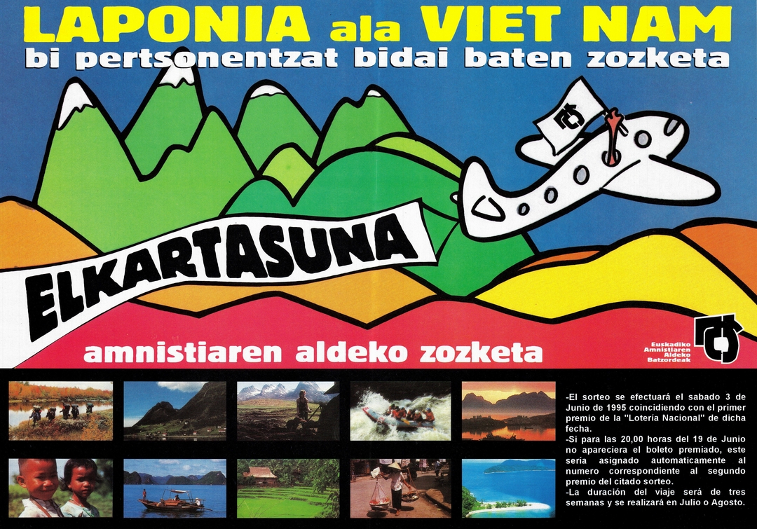Título: Laponia ala Vietnam bi pertsonentzat bidai baten zozketa [Material gráfico] : amnistiaren aldeko zozketa