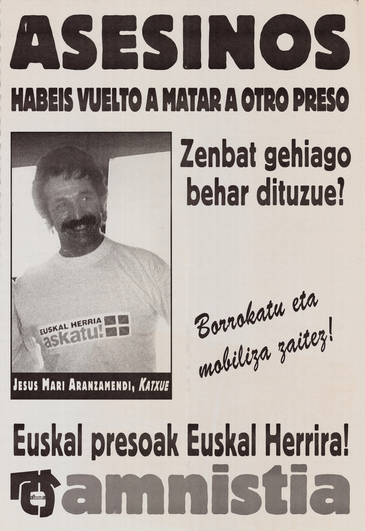 Título: Asesinos [Material gráfico] : habéis vuelto a matar a otro preso : zenbat gehiago behar dituzue? : borrokatu eta mobiliza zaitez! : euskal presoak Euskal Herrira! : amnistia