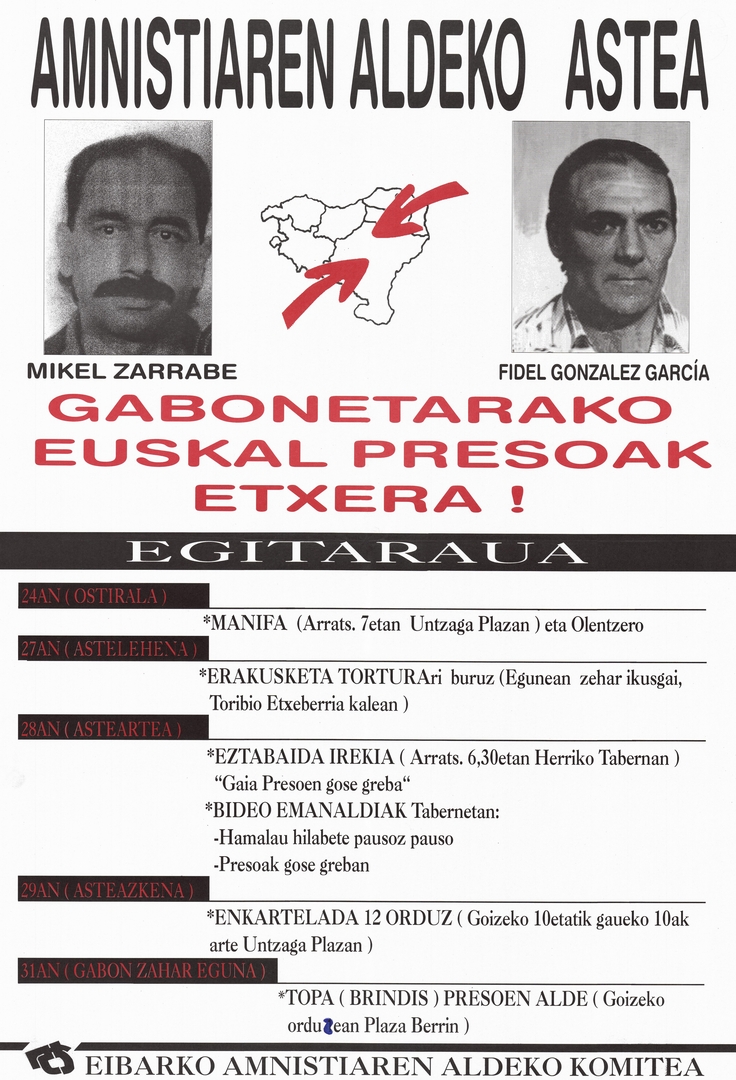 Título: Amnistiaren aldeko astea [Material gráfico] : Mikel Zarrabe, Fidel González García Gabonetarako euskal presoak etxera! : egitaraua