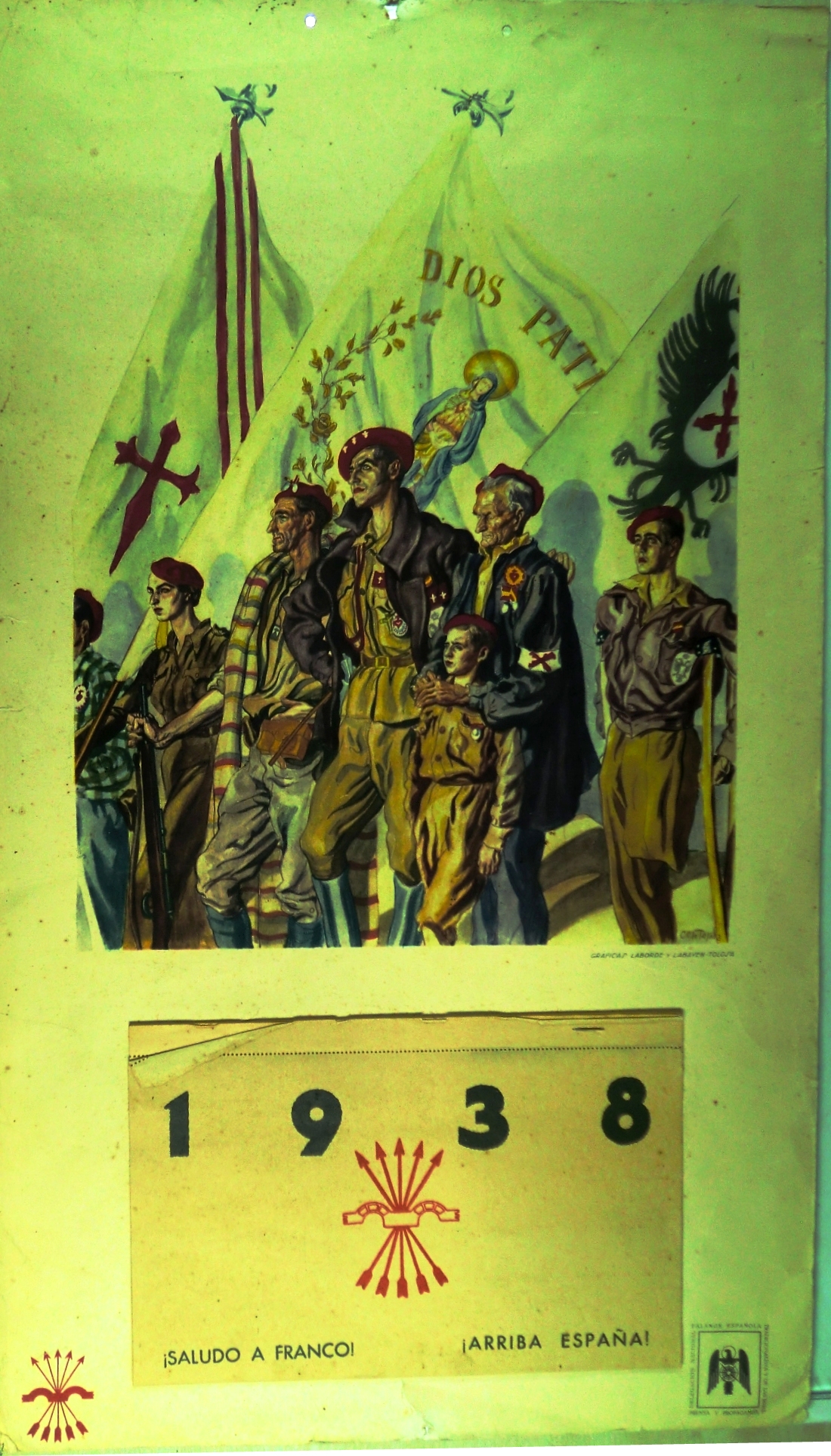Resumen: Calendario del año 1938 con dibujo de requetés