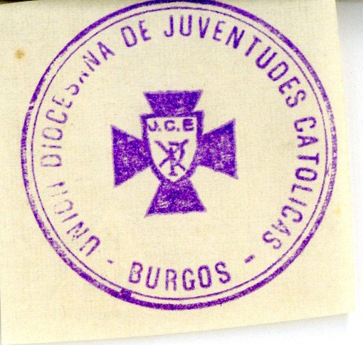 Resumen: Sello estampado de la Unión Diocesana de Juventudes Católicas de Burgos.