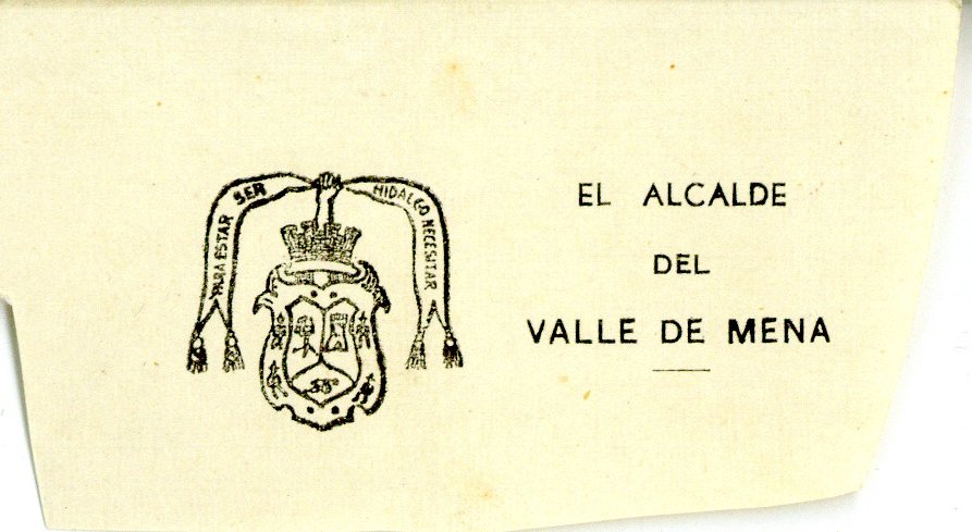 Resumen: Trozo de papel con el membrete de la alcaldía del Valle del Mena (Burgos)