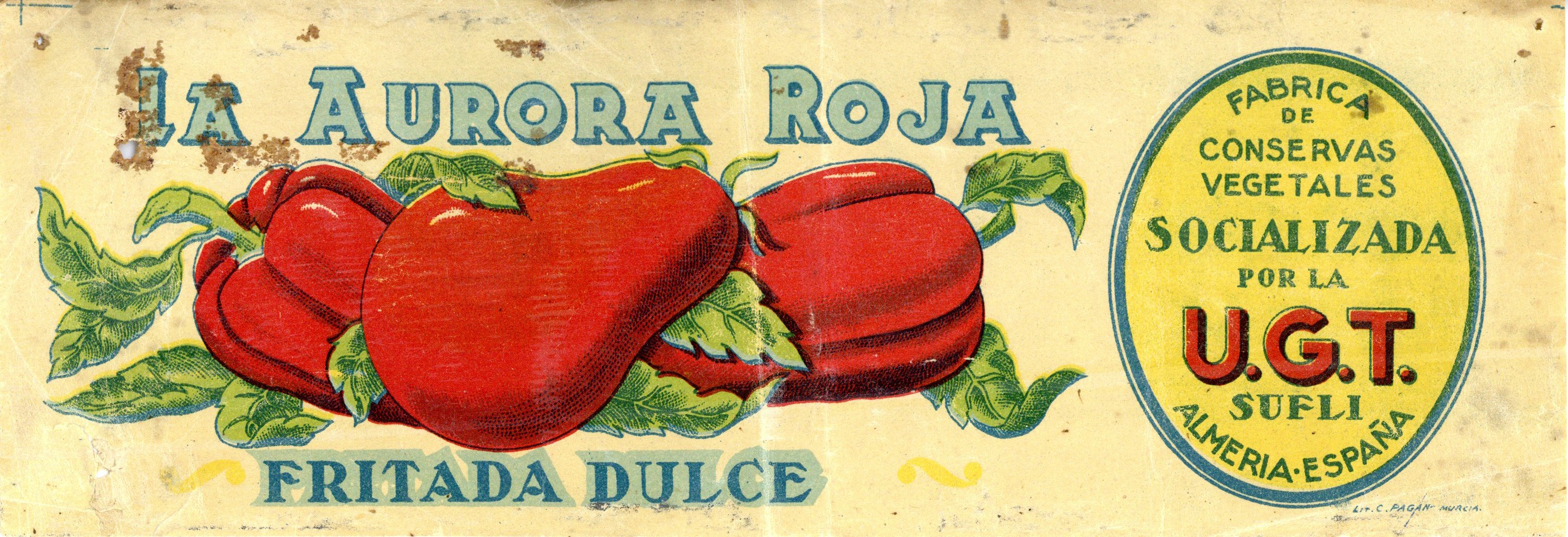Título: La aurora roja [Material gráfico] : fritada dulce : fábrica de conservas vegetales socializada de la UGT, Sufli Almería-España