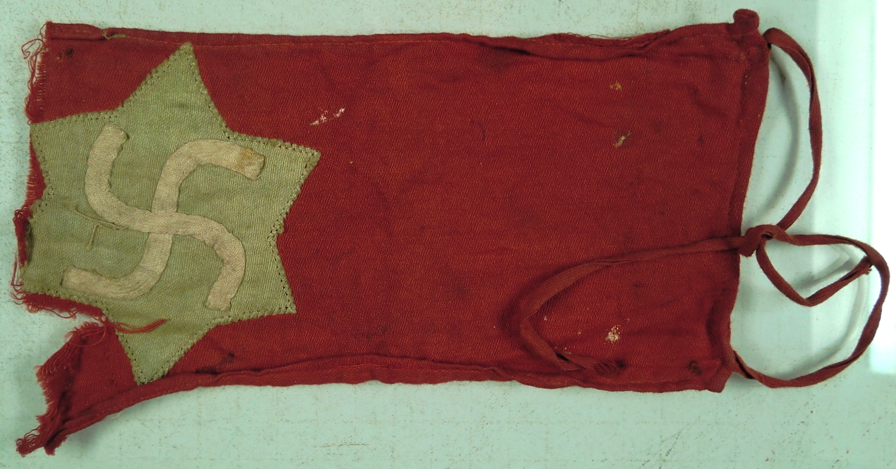 Resumen: Brazalete en tela roja con la esvástica dentro de una estrella. Cogido en Yurre (Bizkaia) 15-VI-1937