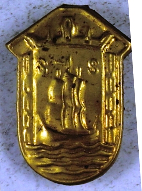 Resumen: Insignia del Auxilio Social con el escudo de San Sebastián.