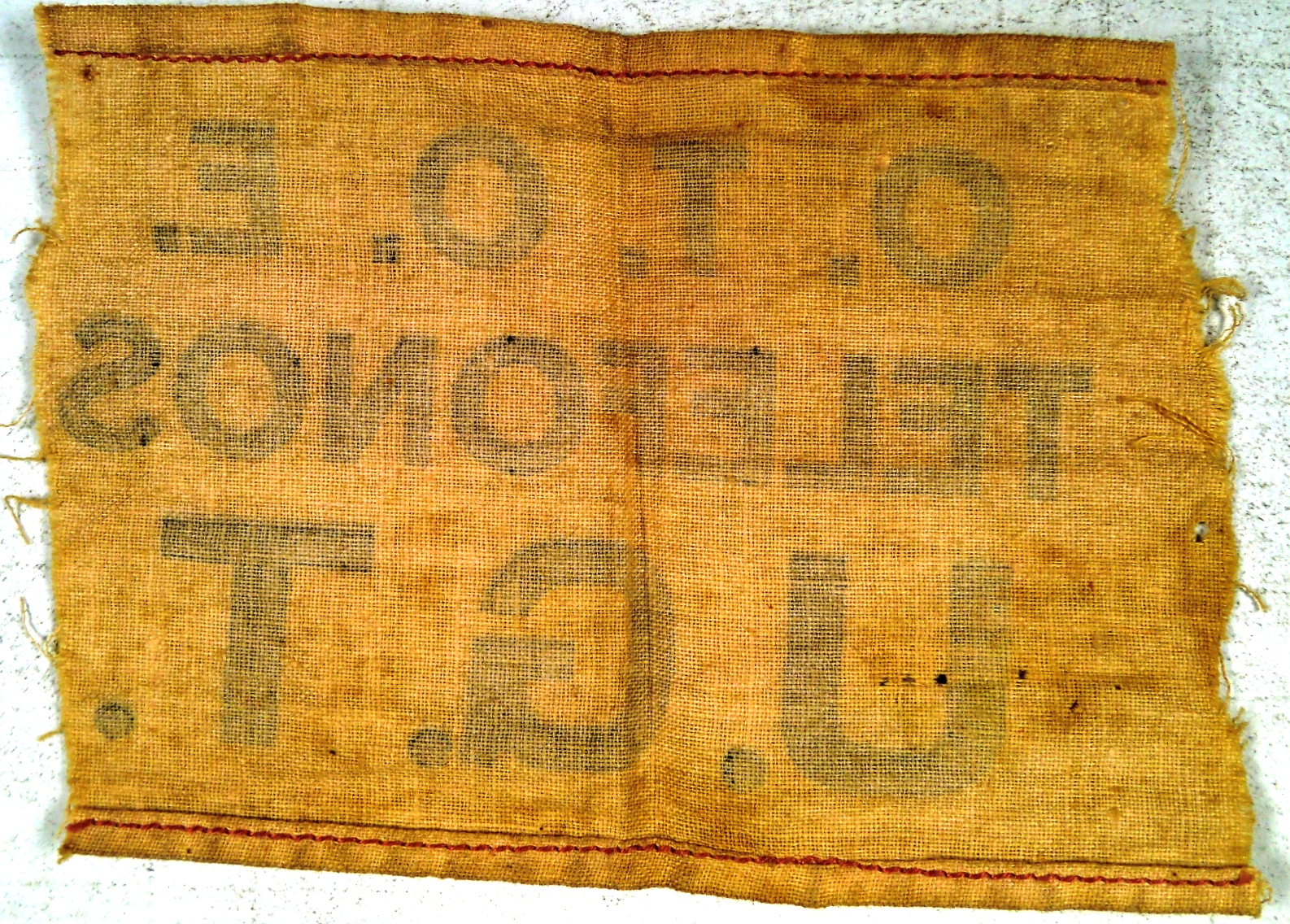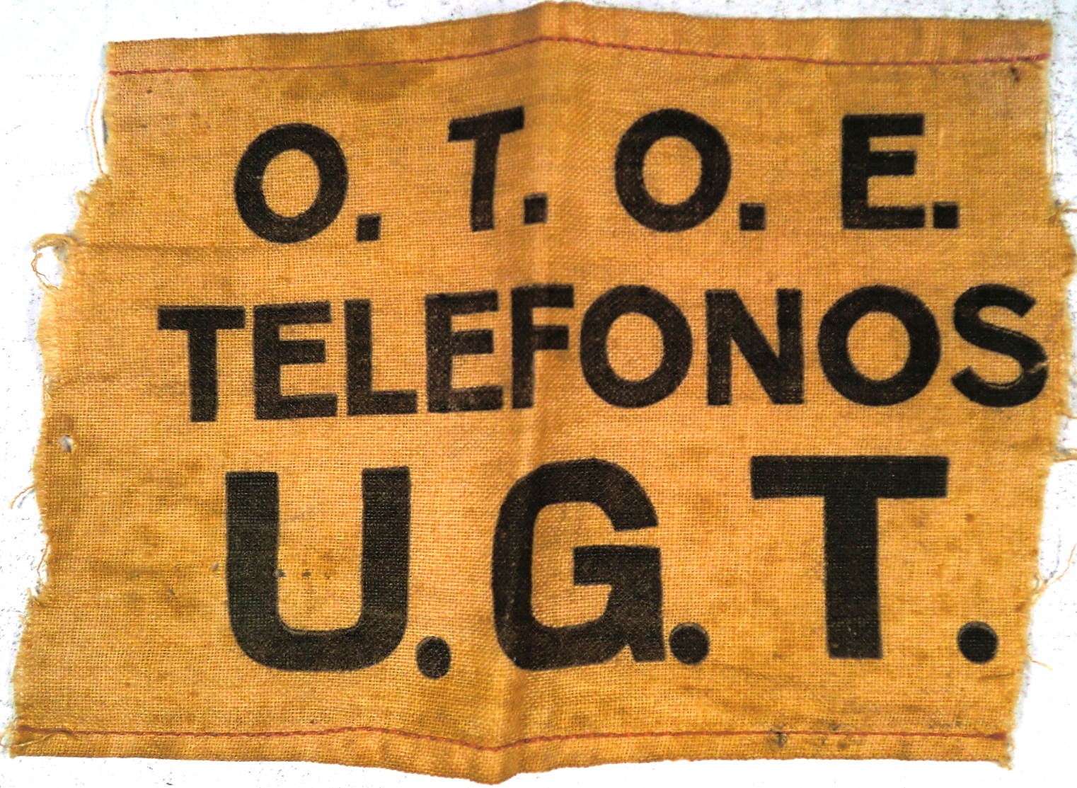 Resumen: Brazalete en tela de OTOE (Organización Telefónica Obrera Española), de la Unión General de Trabajadores.