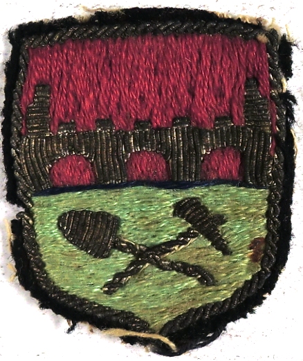 Resumen: Escudo de tela de Zapadores del Euzko Gudarostea, milicias del PNV. Cogido en Santander el 27-VIII-1937