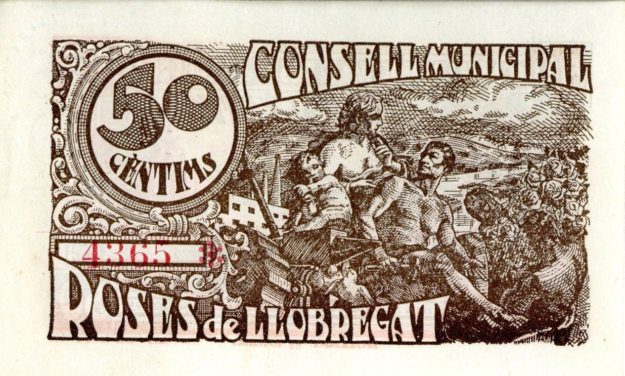 Resumen: Billete emitido por el Consell Municipal de Roses de Llobregat el 20 de mayo de 1937. N. de serie: 4365 Serie C.