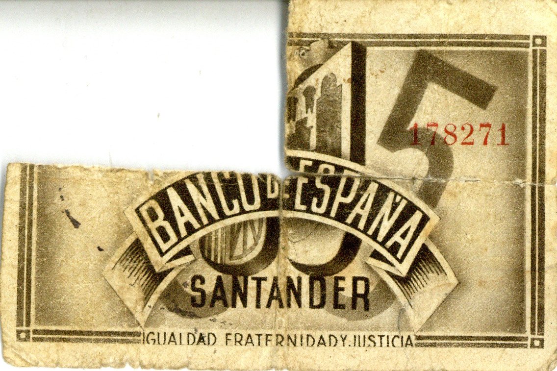 | Resumen: | La zona de Santander se quedó aislada del resto del bando republicano y el Banco de España de Santander emitió talones especiales, debido a la escasez de moneda divisionaria.