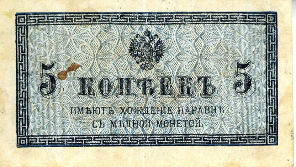 Resumen: Billete ruso de 5 kopeks, época zarista. 1915