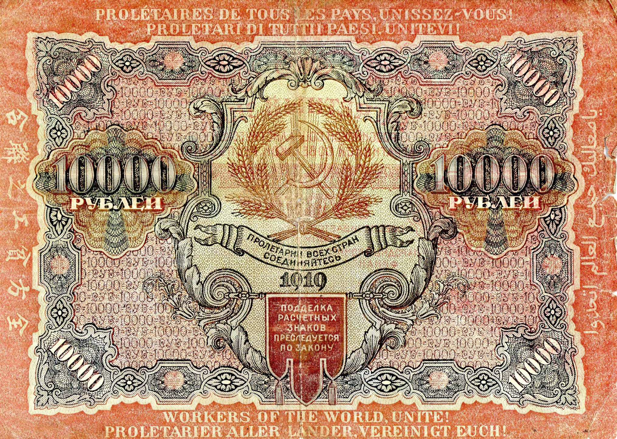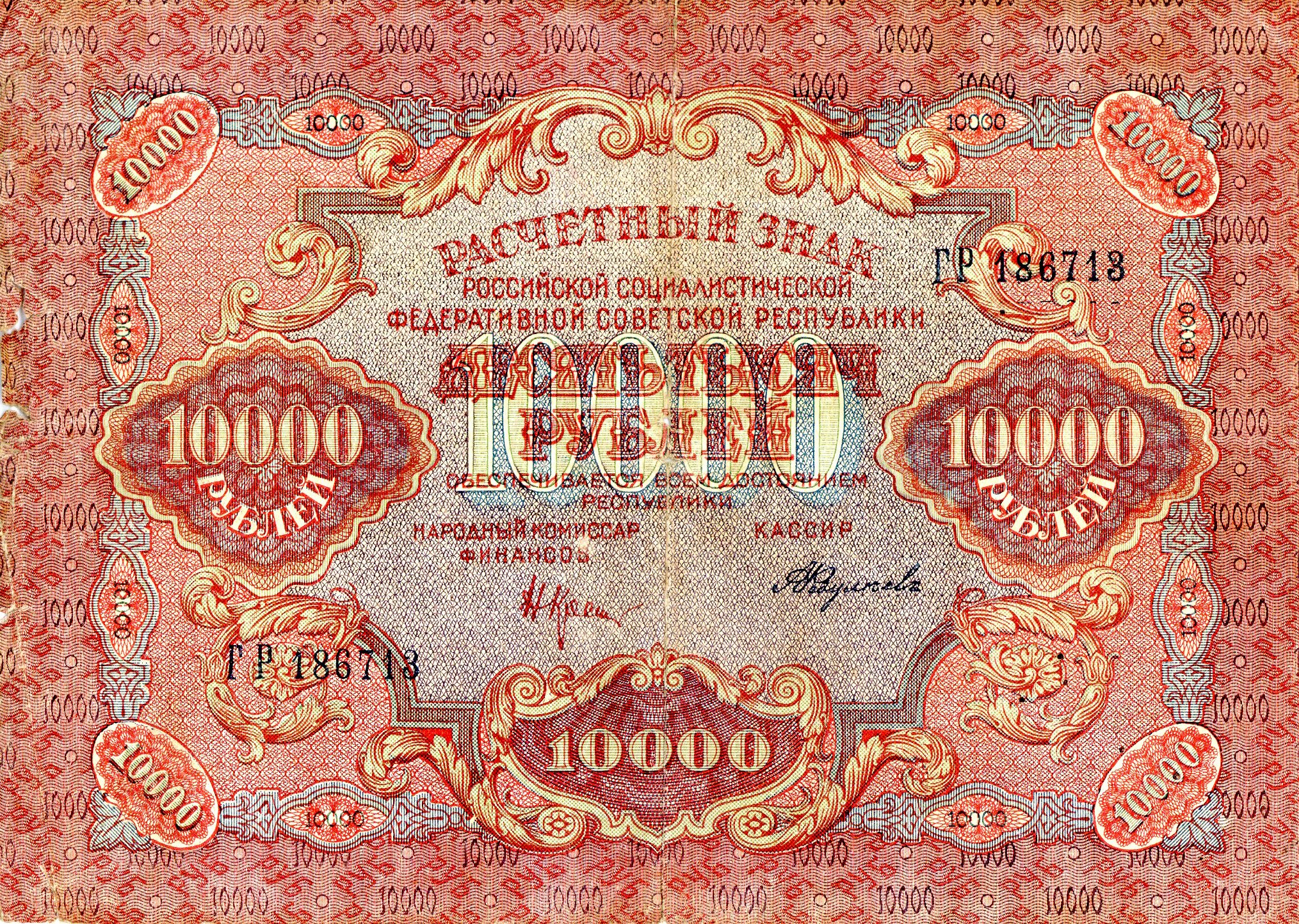 Resumen: Billete de la Unión Soviética, de 10.000 rublos emitido en 1919. Nº serie: 186713.
