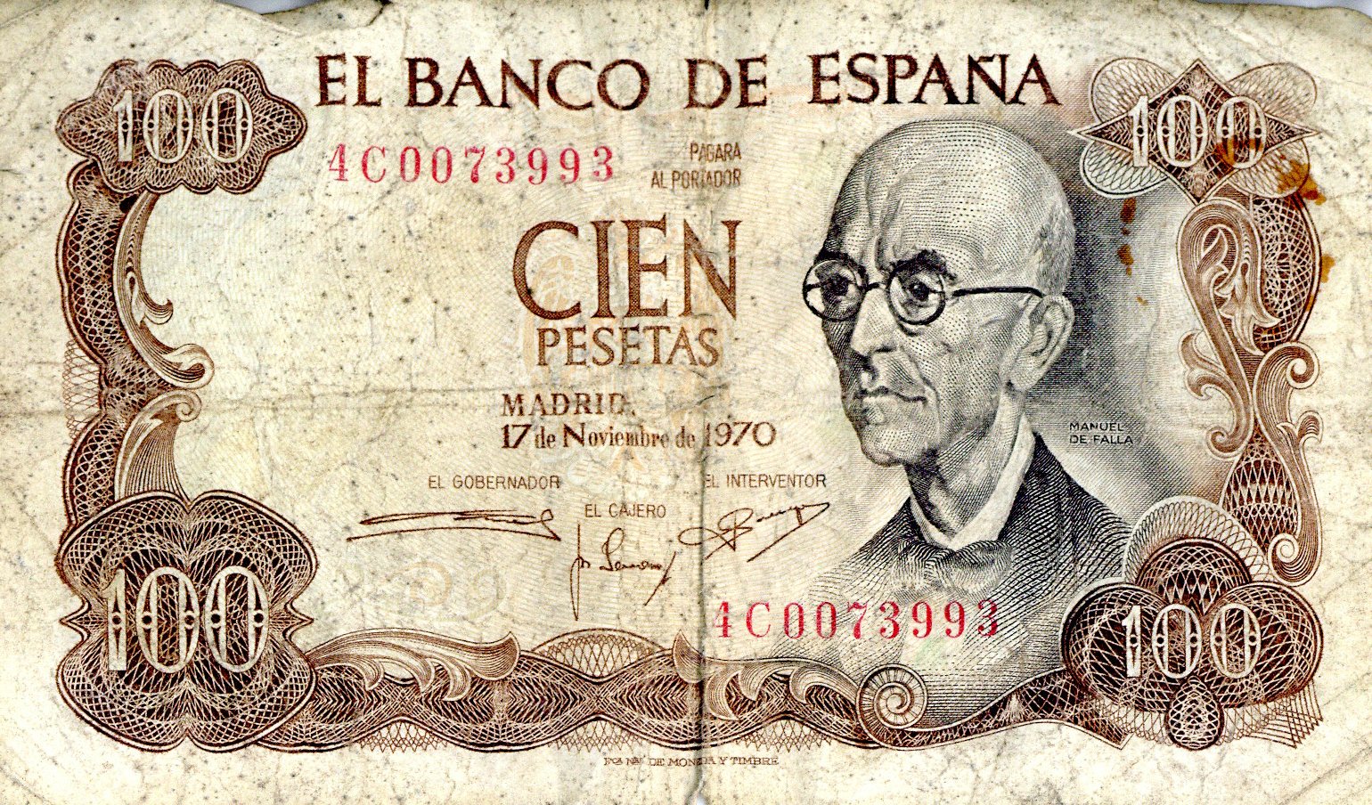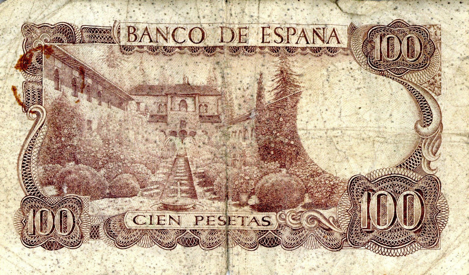 | Resumen: | Billete de cien pesetas emitido por el Banco de España el 17 de noviembre de 1970.