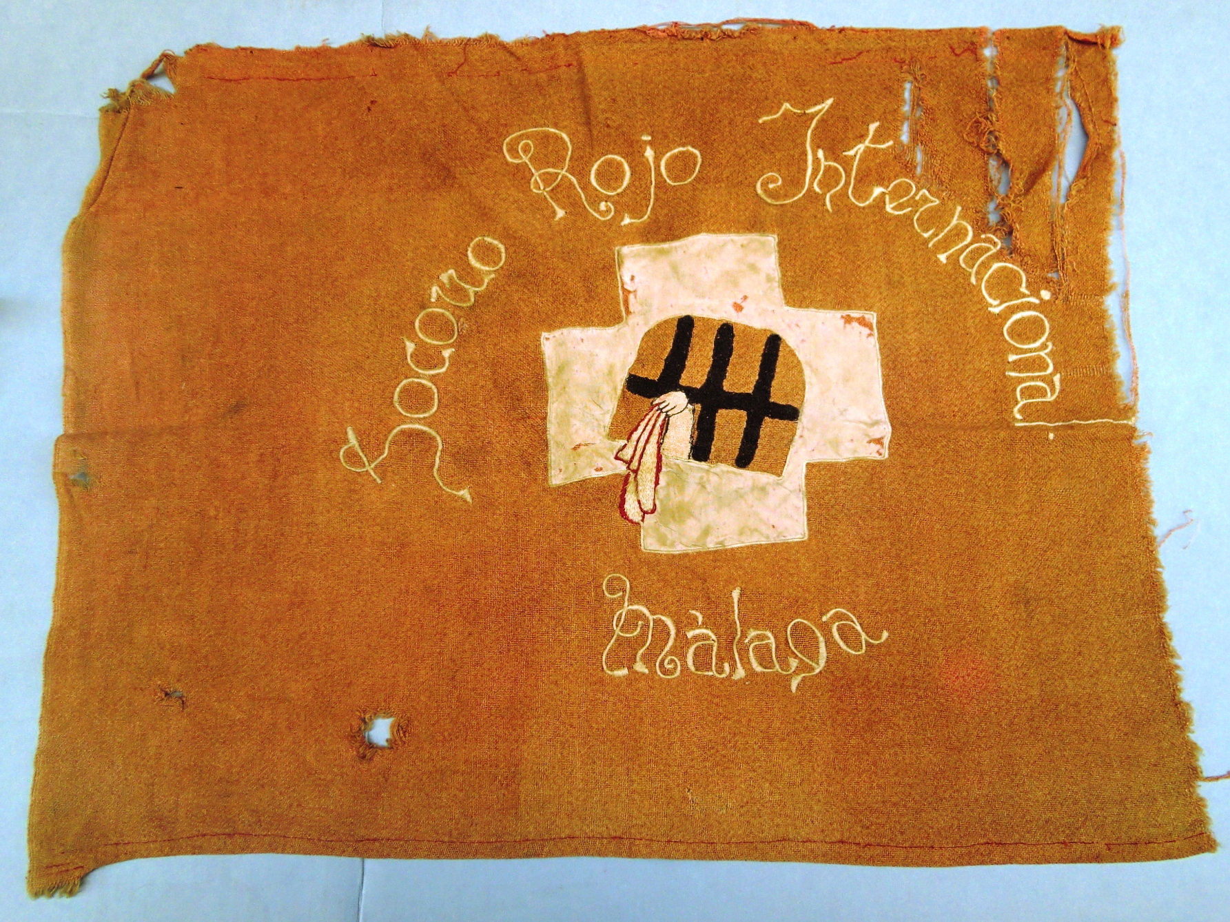 Resumen: Banderín del Socorro Rojo Internacional de Málaga cogido el 8 de febrero de 1937.