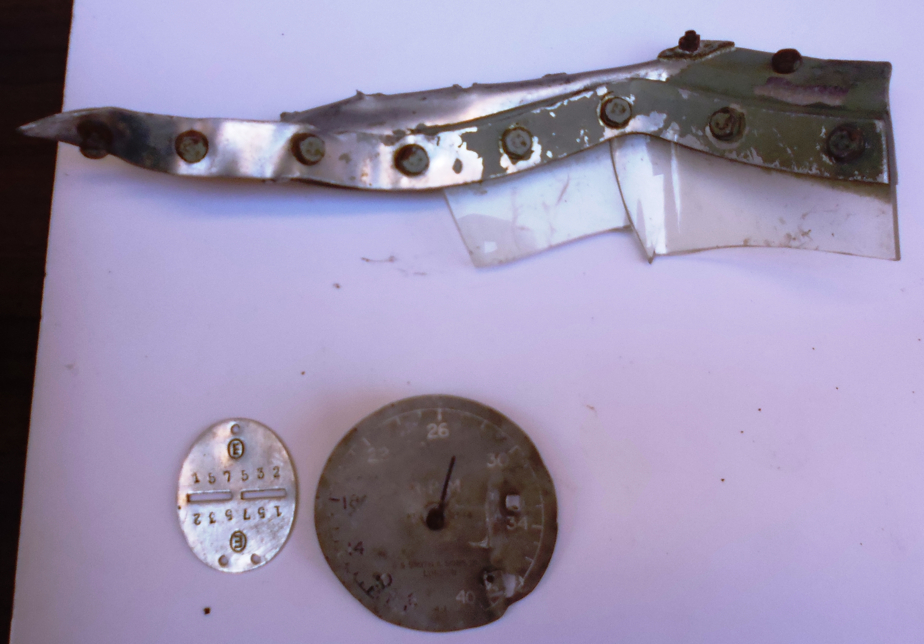 Resumen: Fragmentos y partes del avión derribado en Aranguiz (Álava). En la ficha que acompaña: "Aviones, restos del bimotor rojo derribado por los cazas nacionales en Aránguiz (Álava). Restos del parabrisas, cristal circular del contador de velocidad. 12 de diciembre de 1936".