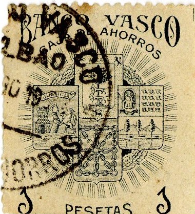 Título: Sello de 1 peseta : Banco Vasco caja de ahorros