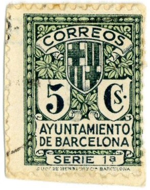 Título: Sello de 5 cs. : Ayuntamiento de Barcelona : Serie 1a : Correos