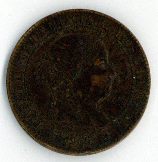 Título: Moneda de 2½ céntimos de escudo : Isabel II