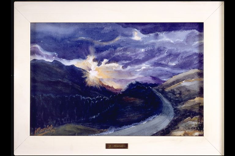 | Resumen: | Técnica: Acuarela Soporte-Materia: Cartulina Dimensiones: 29 X 43,5 cm. ; con marco: 49 X 64 cm. Fecha de ejecución: 1979 Paisaje de atardecer, el Sol se oculta tras el monte. Firmado y fechado ángulo inferior izquierdo Expurgado Nota: la pieza ya no pertenece al Patrimonio de la Fundación Vital. |