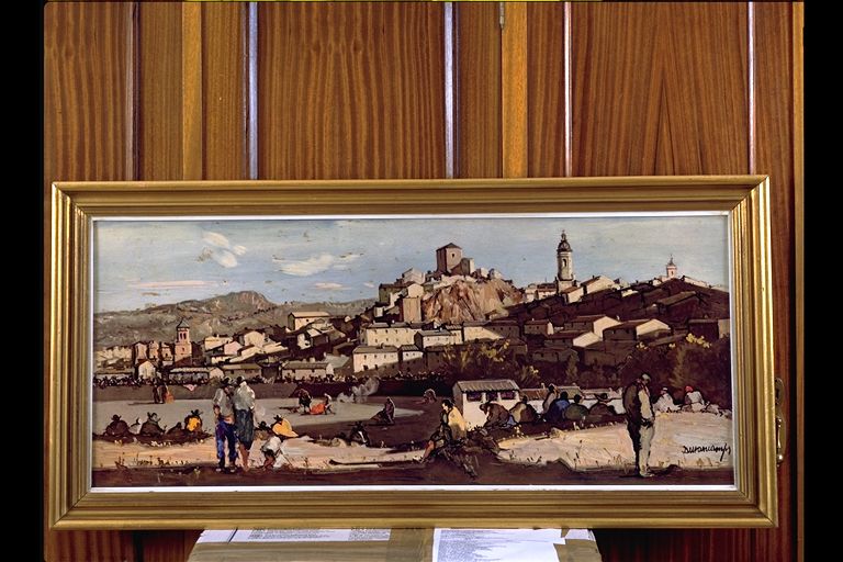 | Resumen: | Técnica: Óleo Soporte-Materia: Tabla Dimensiones: 42 X 101 cm. ; con marco: 54 X 113 cm. Vista de un pueblo con improvisada plaza para lidia de un toro. Firmado en ángulo inferior derecho. Expurgado Nota: la pieza ya no pertenece al Patrimonio de la Fundación Vital. |