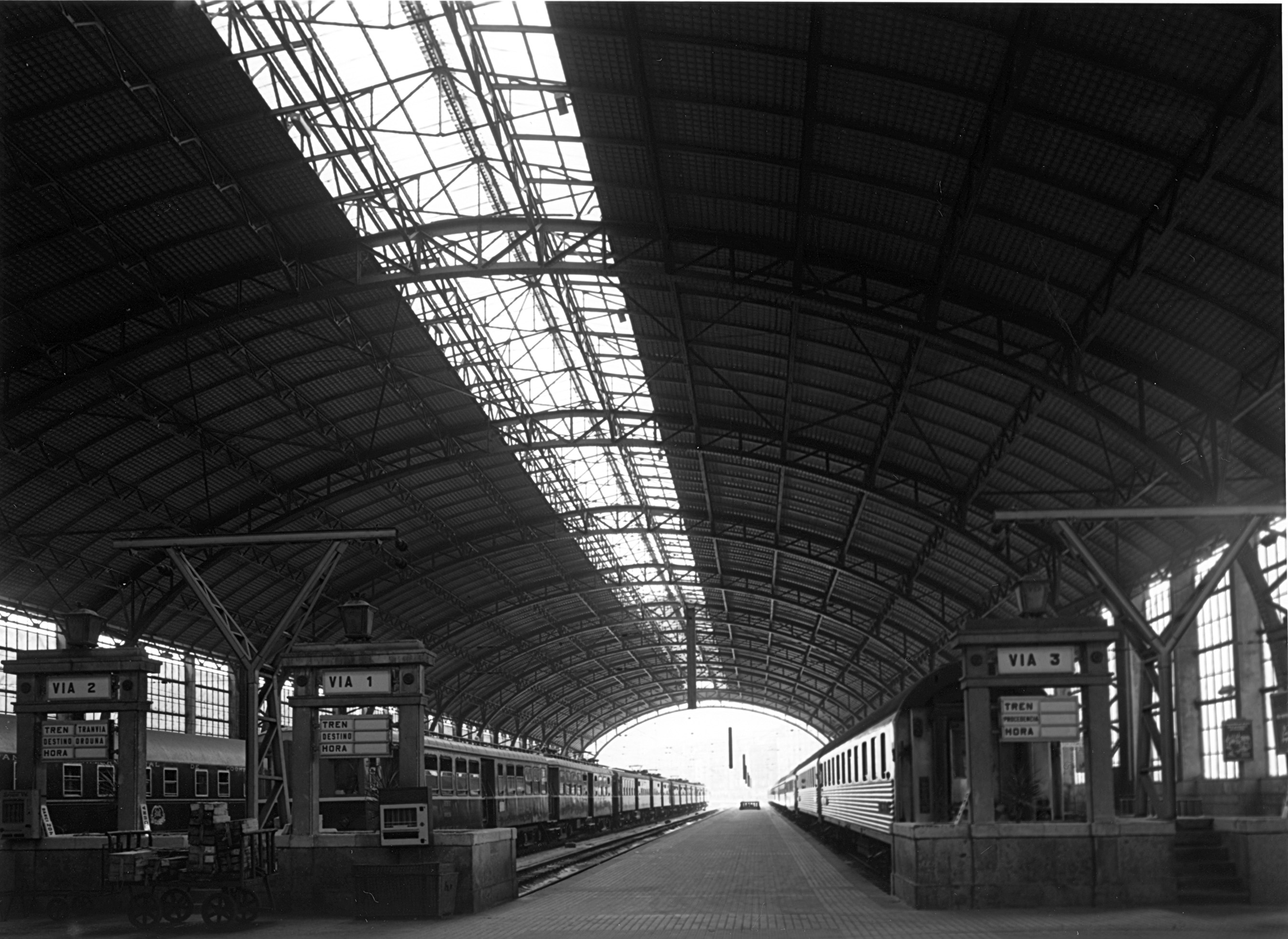 Resumen: Estación del Norte de Bilbao, también llamada de Abando. Fotografías realizadas a 8 de julio de 1975. Signatura C.V._PAIS VASCO_LUZART,S.1,SS.9